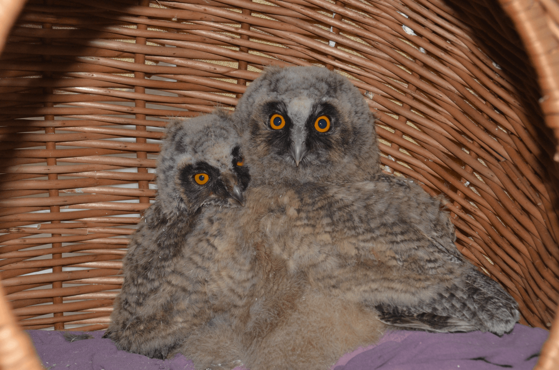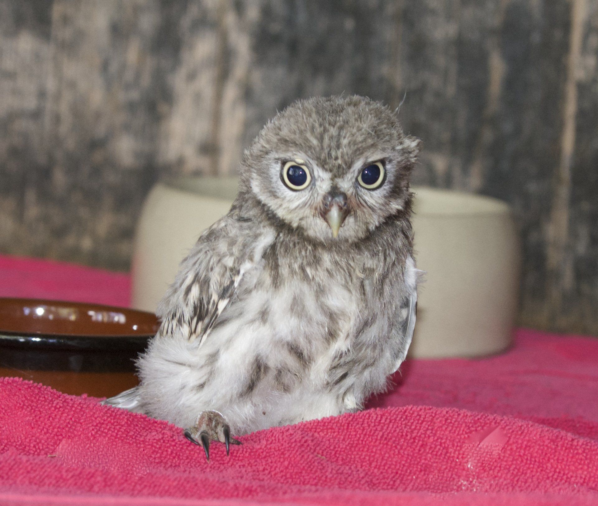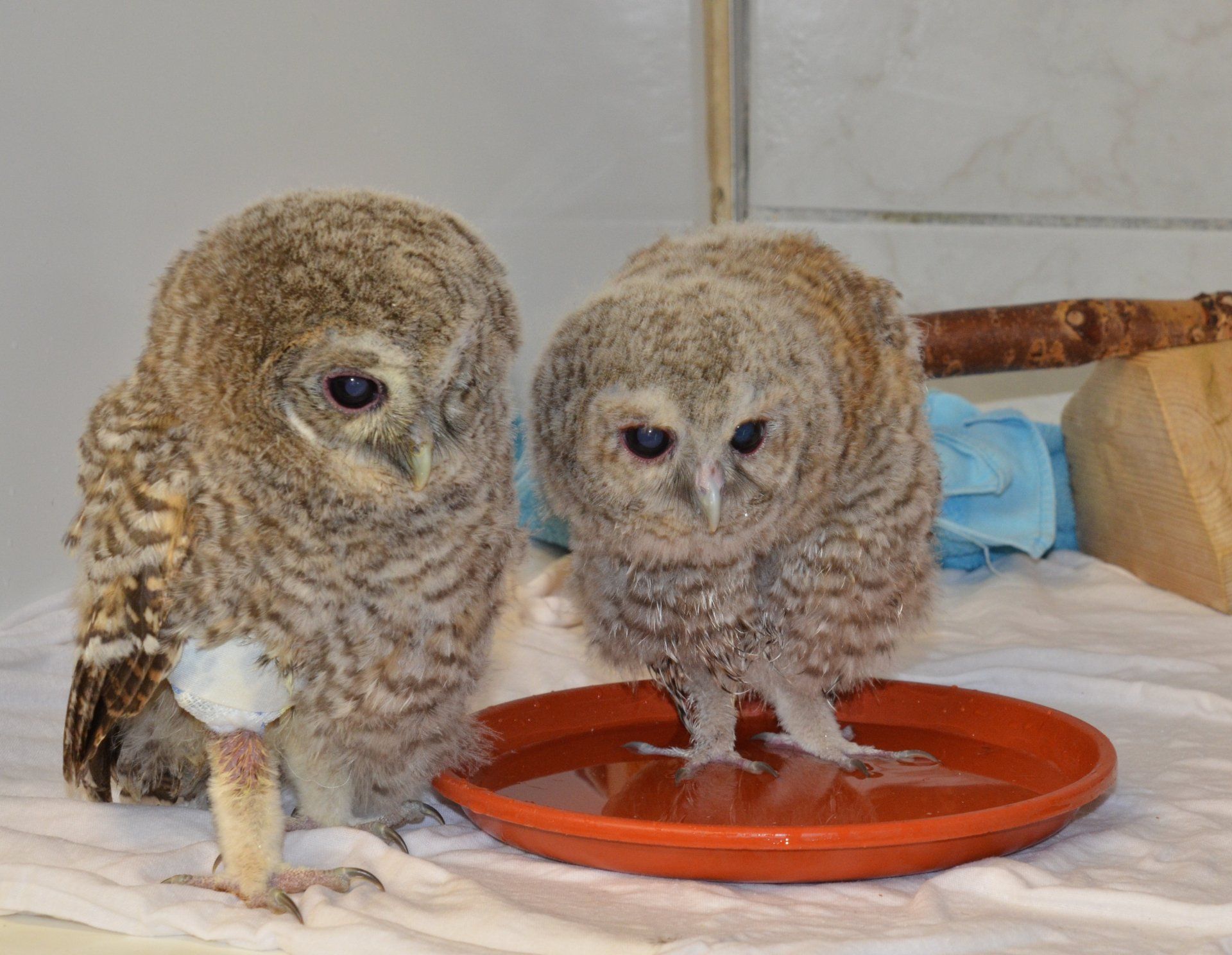 Wie bei Singvögeln kommt es auch vor, dass Eltern junger Eulennestlinge verletzt werden oder umkommen, und die Nestlinge auf menschliche Hilfe angewiesen sind. Manchmal finden die Eltern auch nicht genügend Nahrung, und die Kleinen hüpfen vor Hunger aus den Nestern und werden dort gefunden. Die Nestlinge müssen dann anfangs regelmäßig von ihren menschlichen "Zieheltern" gefüttert werden. Eulen sind Carnivoren, aber wie alle Greifvögel brauchen sie sowohl Fleisch als auch Knochen und Fell/Gefieder, um richtig verdauen zu können - Hackfleisch ist also keine geeignete Ernährung! Um Fehlprägung auf den Menschen zu vermeiden, ist es wichtig, sie mit Artgenossen zu vergesellschaften.