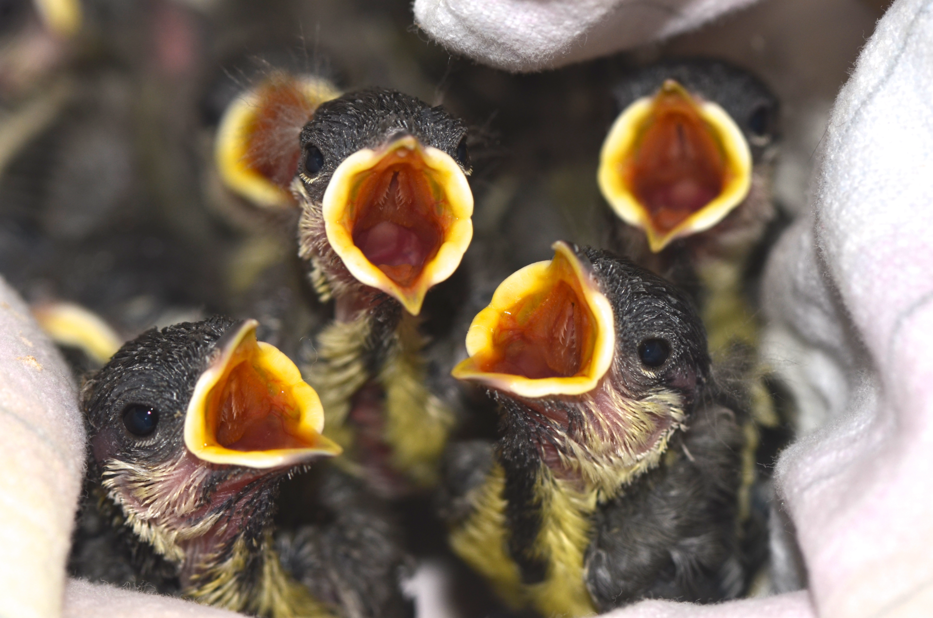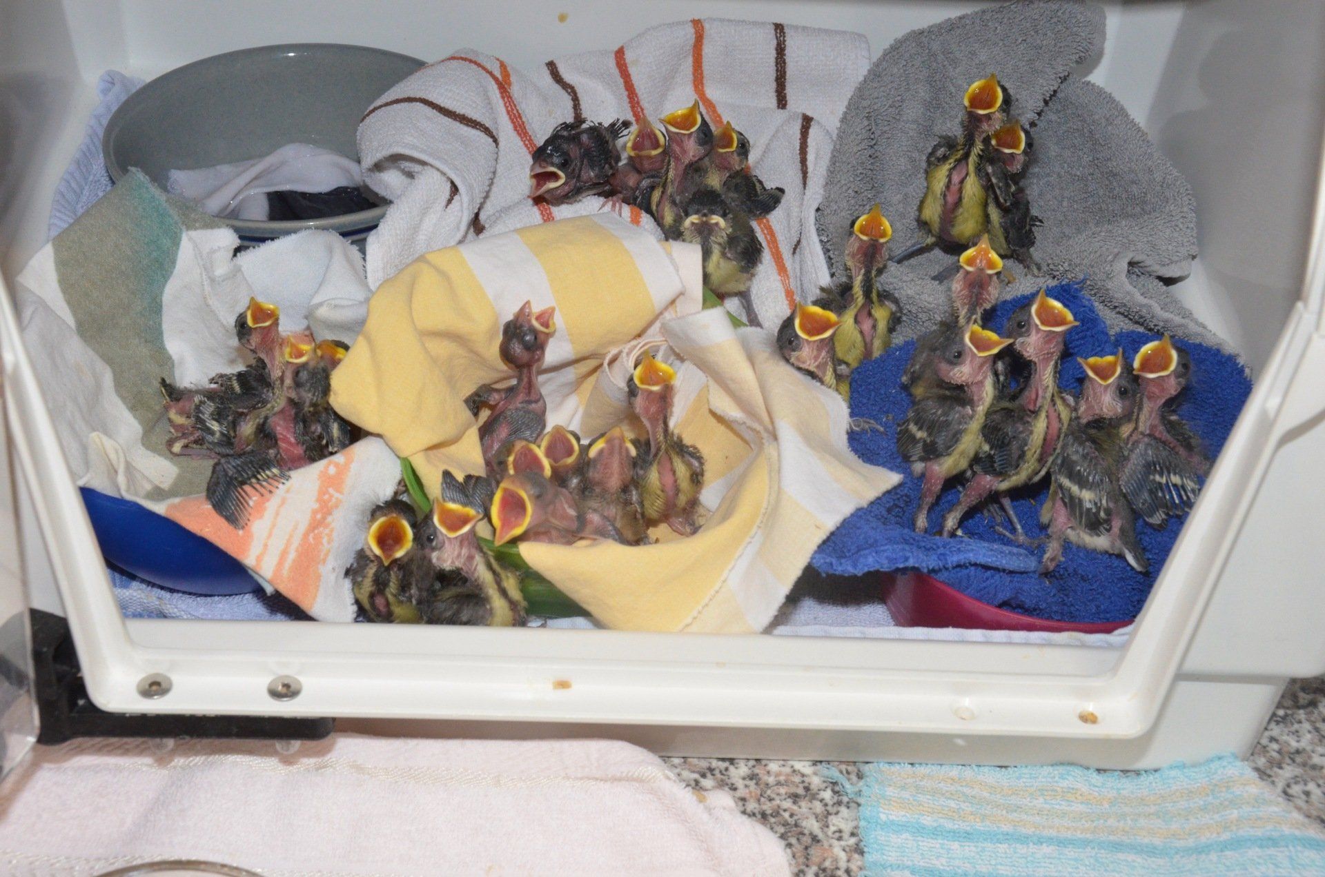 Die größte Herausforderung bei der Jungvogelaufzucht ist die korrekte Identifizierung der Arten und Bestimmung der artgerechten Ernährung. Denn wenn Singvogel-Nestlinge falsch gefüttert werden, kann das den Tod der Tiere zur Folge haben. Manchmal kommen die Nestlinge noch vollkommen nackt in die Pflegestation, und man kann nur anhand der Schnabelform erkennen, ob es sich um einen Insekten- oder Körnerfresser handelt. Deswegen ist es so wichtig, die Jungvogelaufzucht fachkundigen Pflegern zu überlassen, statt es selbst zu versuchen! Verwaiste Singvögel kommen in Pflege, wenn ihre Eltern verunglücken oder ihre Nester zerstört werden, z.B. bei (oft illegalen) Hecken- oder Baumschnitten.